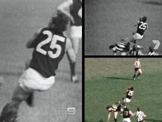 These include choice moments from the iconic HSV7 and rarely-seen GTV9 broadcasts, unseen angles of the game from both The Big Game (1970) and Barry Thomas’ unused camerawork for Movietone Productions, and memorable excerpts from the radio commentary boxes of 3KZ and 3AW.
