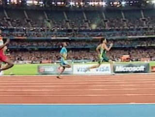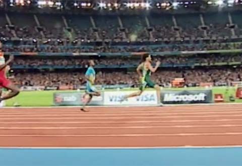 The sprint suits seen here were designed to increase the natural movement of the athlete, with special bands that contracted and expanded with important muscle groups; the designers claimed that less energy was lost as a result.
