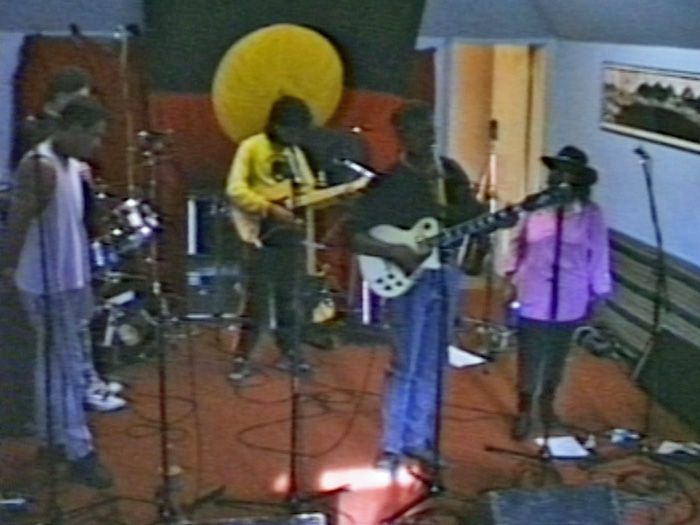 Robbie Thorpe interviews Archie Roach at the 3CR radio studio in Melbourne. The station was one of the first to play Archie's music in the late 1980s.