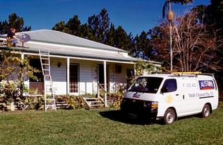 AUSTAR installs a satellite dish at a home in regional Australia, 1999. Courtesy of FOXTEL Management Pty Ltd.