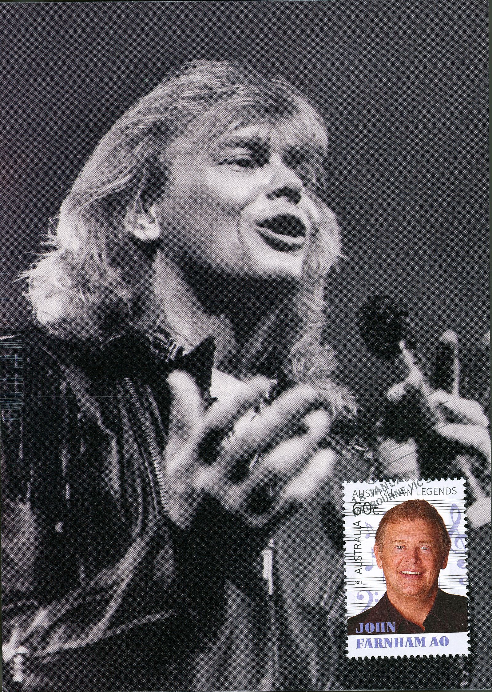 John Farnham was featured by Australia Post in their Legends of Music postage stamp and maxi-card release of 2013, alongside other music industry icons – including Ian 'Molly' Meldrum, INXS and Cold Chisel.