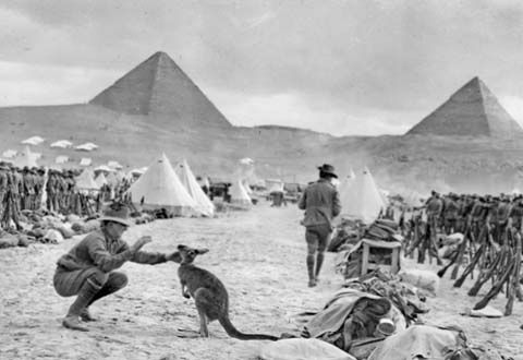 Australian and New Zealand troops arrived in Egypt in December 1914. They set up Mena Camp near the Great Pyramids outside Cairo and began training in preparation for the Western Front and Gallipoli. This footage sees them exploring the extraordinary landmarks - the Pyramids and the Sphinx.