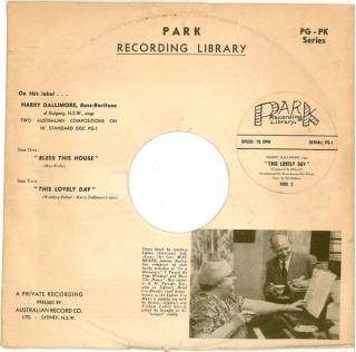 Harry Dallimore, bass baritone of Gulgong, NSW, sings two Australian compositions on 10" standard disc PG-1