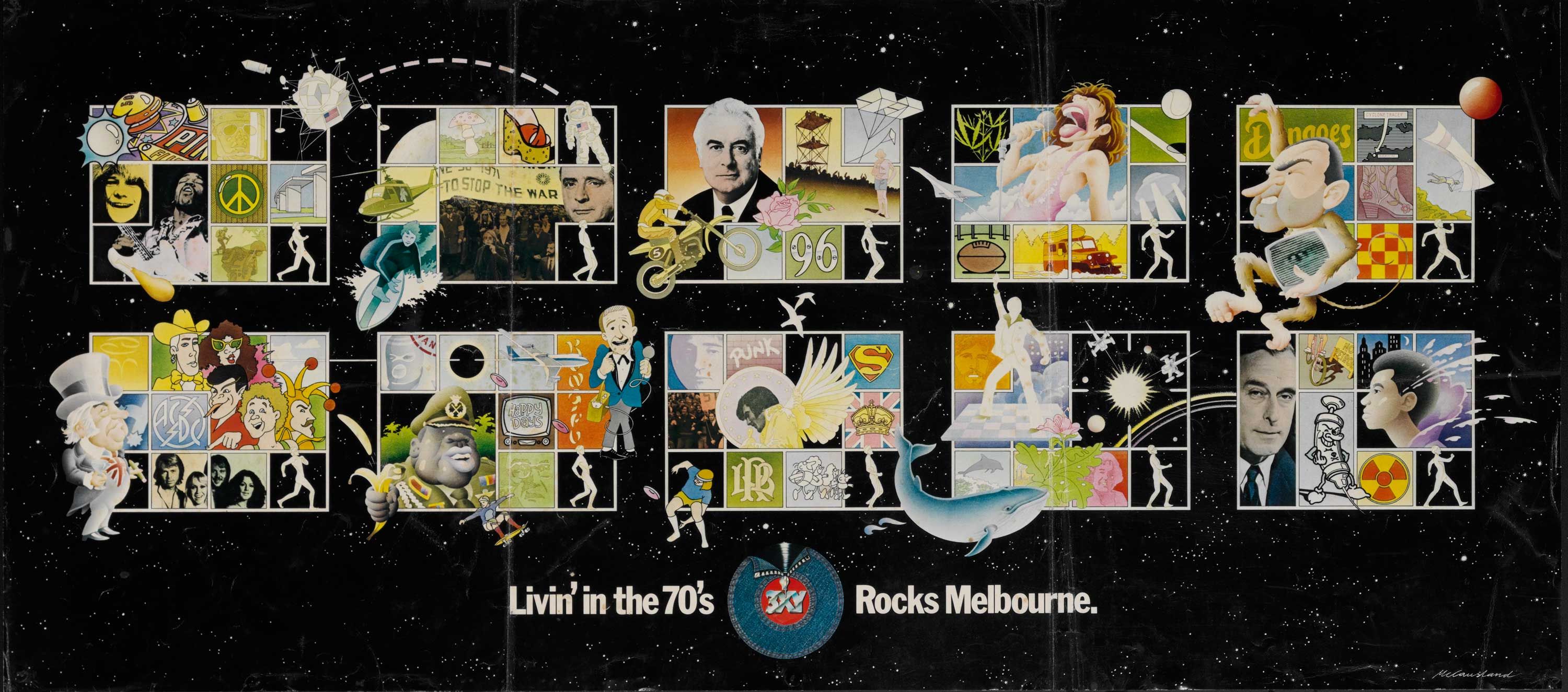 A crowd of smiling faces of family and community fills this large screen-printed poster by Redback Graphix.