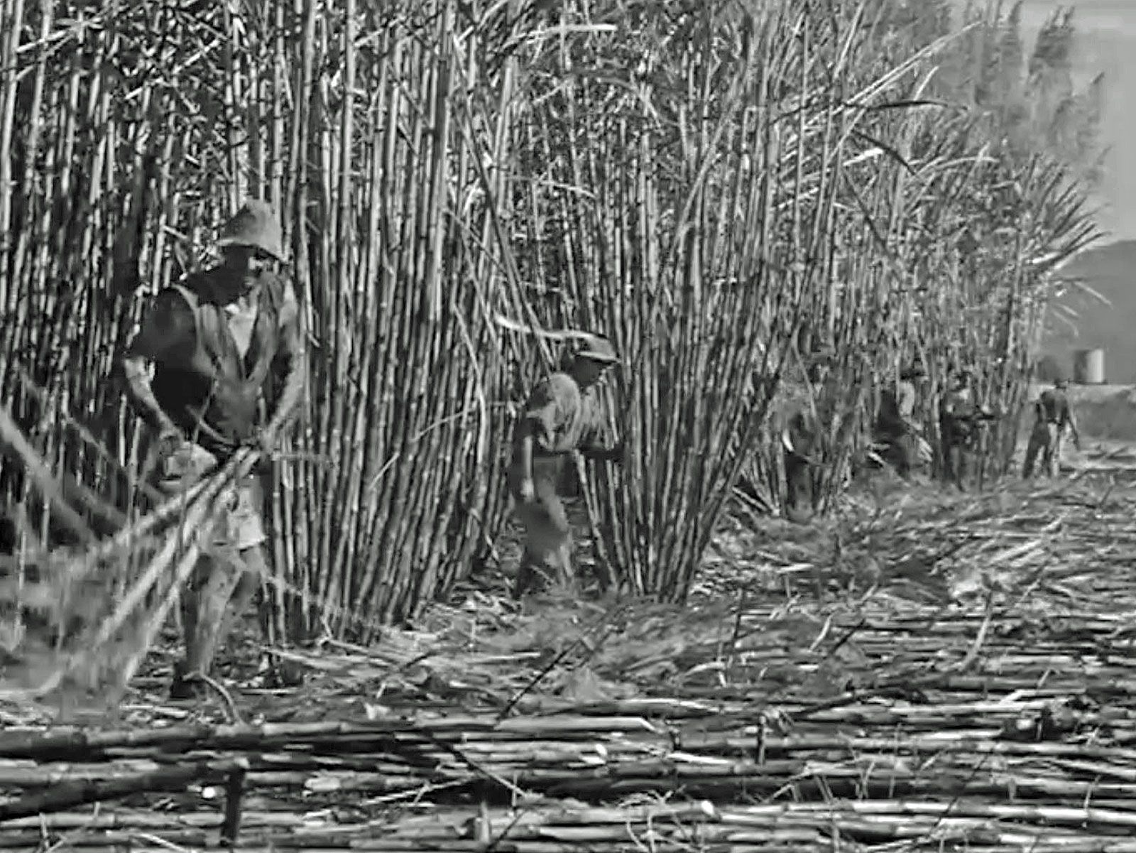 It shows itinerant workers contracting with a cane farmer, cutting the cane and loading it for transport, from early morning to dark.