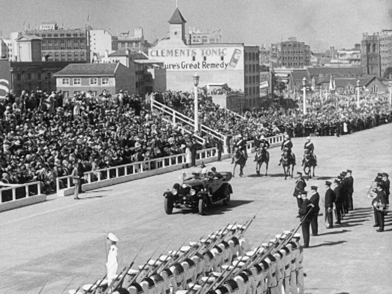Amateur footage documenting aspects of the construction of the Sydney Harbour Bridge. The closing of the arch on the 19th of August, 1930 is shown.