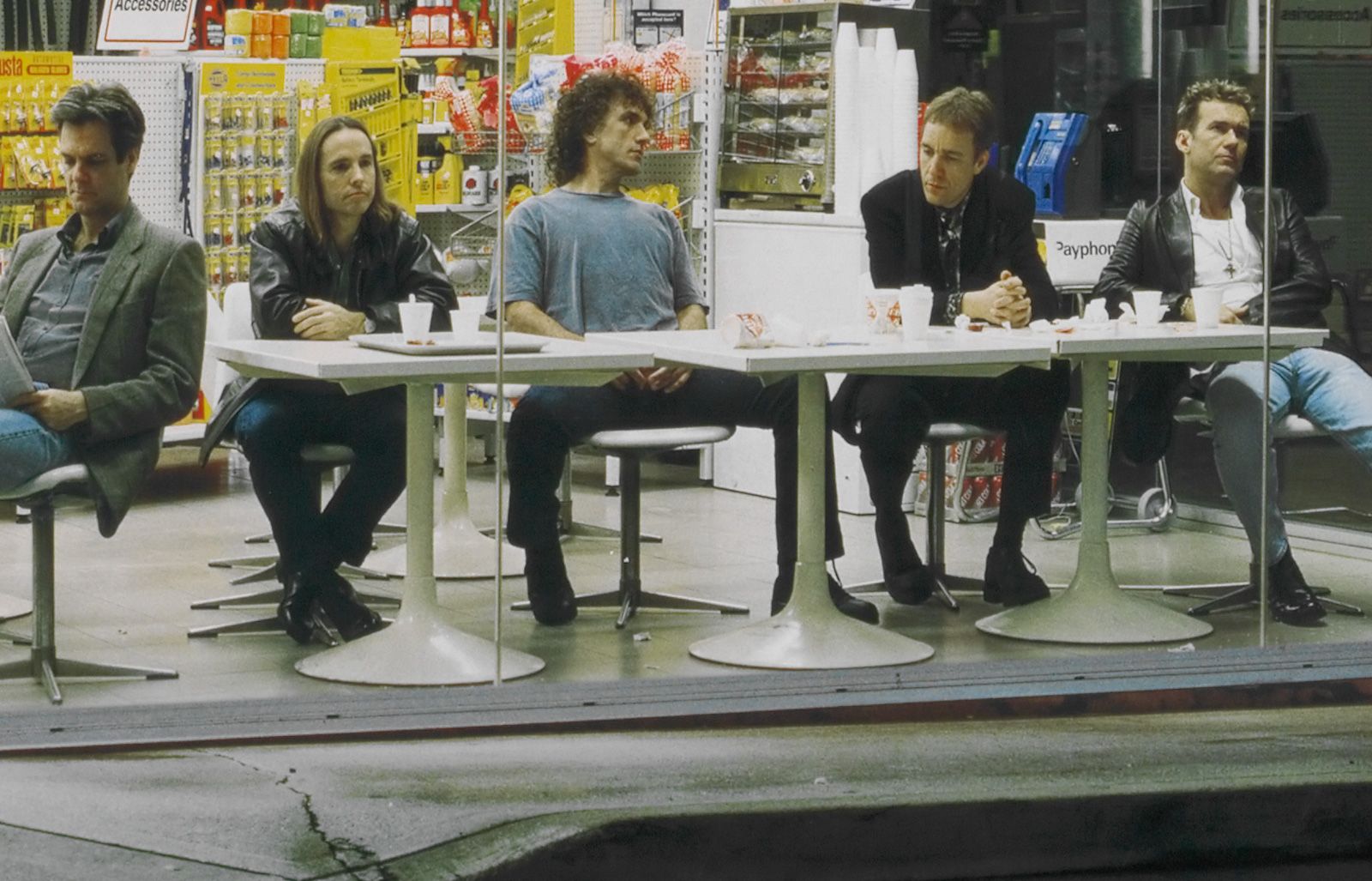 Featured in the poster from left to right are Les Kaczmarek (bass player before Phil Small joined the band), Steve Prestwich, Jimmy Barnes, Don Walker and Ian Moss.