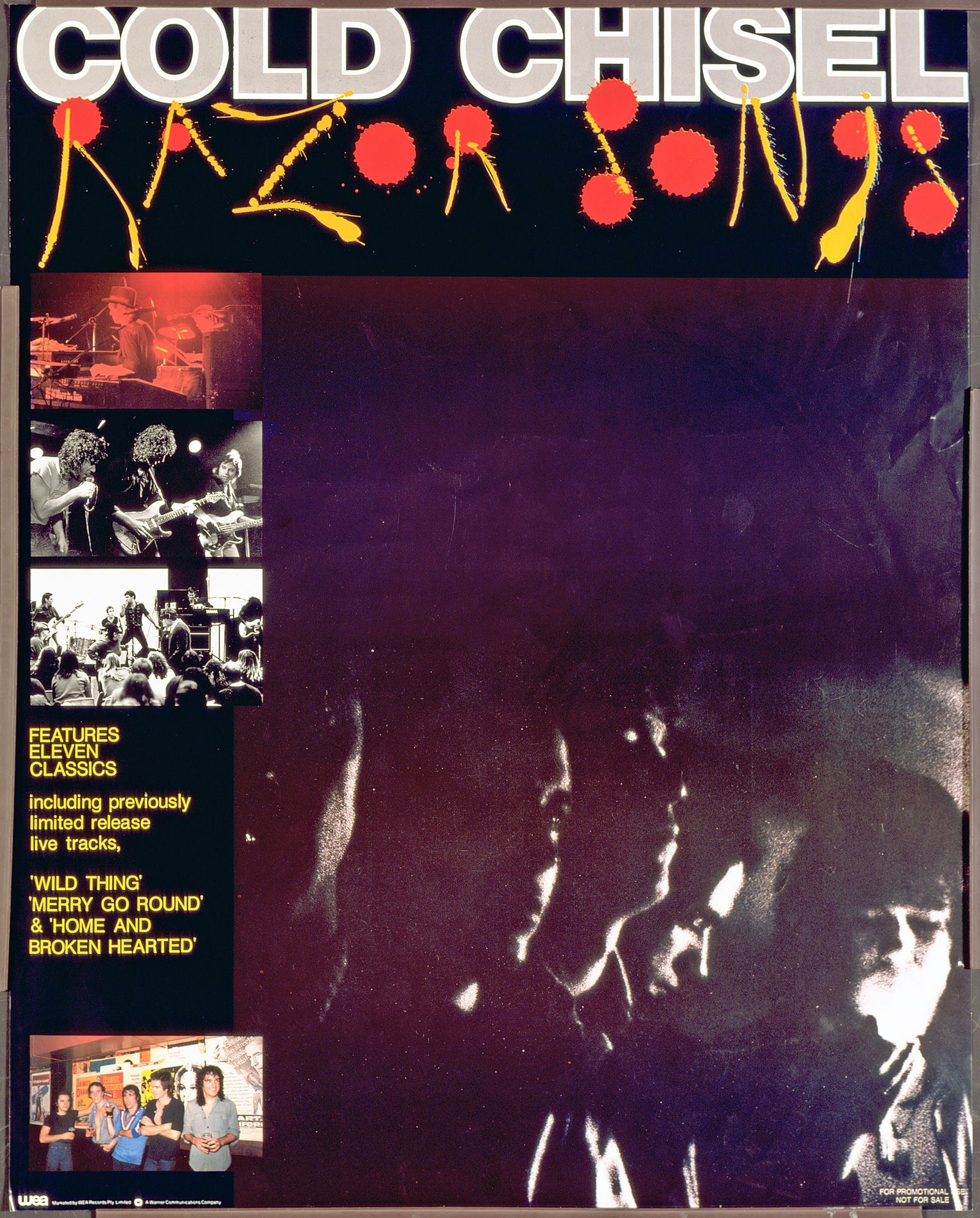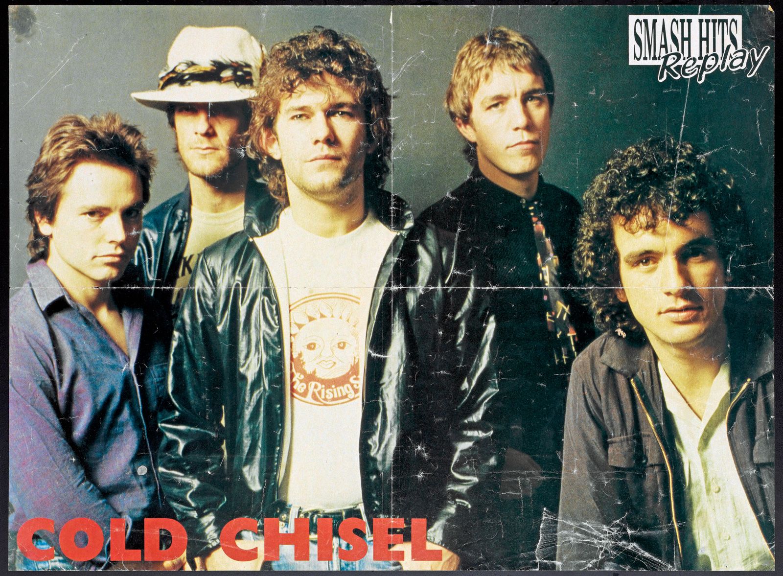 This lift-out poster from a Smash Hits magazine features the band members of Cold Chisel. Smash Hits was one of the most popular music magazines of the 1980s and was aimed mainly at older teens.