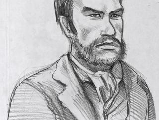Computer image from a drawing of Heath Ledger as Ned Kelly.