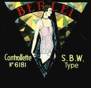 The 'Berlei controllette [corset] no. 6181 SBW (short below waist) type'. The design is particularly beautiful and has echoes of art deco in the triangular shapes and filigree font.