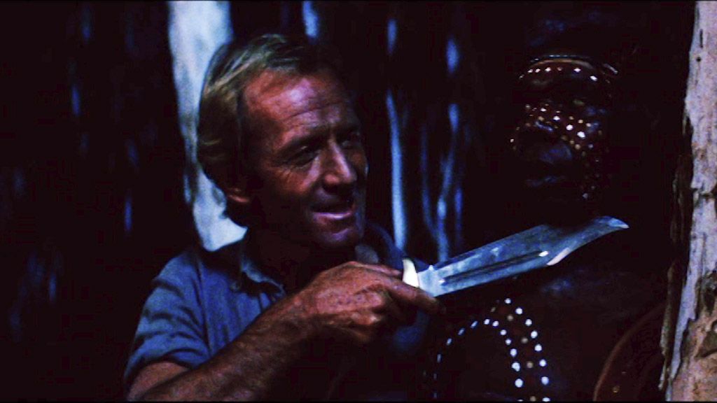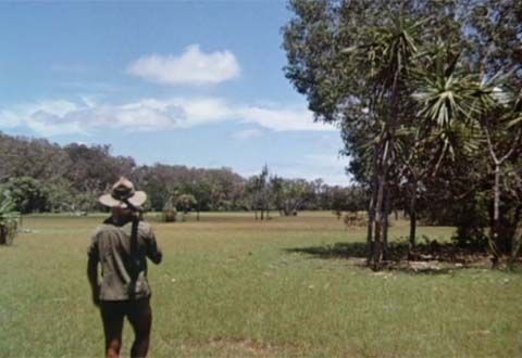 Rushes are raw footage from a day’s shooting where the same scene is often repeated from various angles. These silent rushes show close-ups of Mick Dundee taking New York journalist Sue Charlton (Linda Kozlowski) out on the river with Walter (John Meillon). This short scene appears in the film and plays with music and no dialogue.