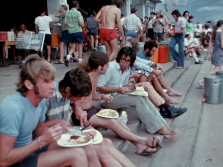 This unedited raw footage was shot by freelance cameraman Keith Bushnell in the immediate aftermath of Cyclone Tracy which hit Darwin on Christmas Day 1974. It captures the devastation and destruction of the city and the temporary shelter and food hall set up to provide assistance to the people who lost their homes. It also shows a convoy of navy helicopters across the Darwin sky.