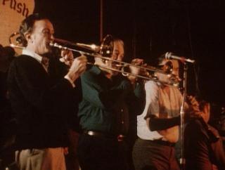 John’s connection to the dingoes isn’t overly elaborated in the finished film, but it’s a significant theme – part of an underlying sense that there is a kind of spiritual connection for him between his musical creativity, the wilderness in which he works and the soulful, independent nature of the dogs. Anderson has been trying to kill this dingo for some time. It walks on three legs because it has been trapped before – that makes it harder to fool, and more dangerous to sheep, because it can’t run fast enough for quicker prey. John has developed his trumpet sound by listening to the dingoes at night. This scene is like a Biblical epiphany in the desert – the moment when John realises he shouldn’t be killing dogs, but playing trumpet. It’s a little clumsy, with the superimposition of the band, but still very haunting, largely because of the solo trumpet (played by session musician Chuck Finley, who created the John Anderson sound), and the quiet solitude of the bush setting. The dog’s name is Diz – named after Dizzy Gillespie, another famous jazz trumpeter.