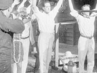 Whether or not the government had a hand in its production, Snowy Baker had his own pressing personal reasons for wanting to do it. One of these was that his principal business, promoting boxing through his interest in the Sydney Stadium, was going broke. The reasons are complex and inevitably speculative. Baker had become a household name in Sydney by 1906, when a thousand people turned out to farewell him as he sailed for England to compete in the Amateur Boxing Association’s championships. By then, he had already played rugby union for Australia, and distinguished himself in running, swimming, diving, fencing, rowing, wrestling, shooting, tent-pegging, riding, cricket and water polo. In the 1908 Olympics in London, he competed in three different sports, winning a silver medal in boxing (as a middleweight).