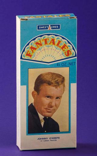 Fantales promotional chocolate box with image of Johnny O'Keefe