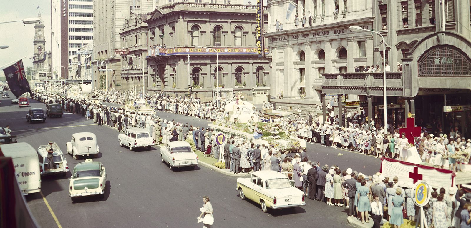 This is an engaging piece of historical footage which shows the technology and transport used to fight fires in 1909. The six minutes of film held at the National Film and Sound Archive may not be complete – it cuts out abruptly in the middle of demonstrations to camera, and there are no credits or title cards which point to its provenance. Based on a description in the South Australia Register, it is believed to be a promotional film for the South Australian Fire Brigade shot by the Spencer Theatrescope Company in June 1909. By way of comparison, Frank Hurley’s Fire Guardians (1932) provides an entertaining dramatisation of the history of firefighting through the ages – complete with re-creations staged by real firefighters wearing Egyptian costumes!