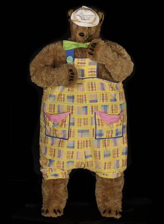 Tedd Dunn designed and wore this 1969 Fredd Bear costume on the Breakfast-A-Go-Go show. Fredd predated Humphrey B Bear, which makes him the first children's TV bear in Australia, beginning his run on The Children’s Show, which became The Magic Circle Club (1965–67).