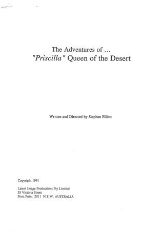 Front page of Proposal and Synopsis document for The Adventures of Priscilla, Queen of the Desert.