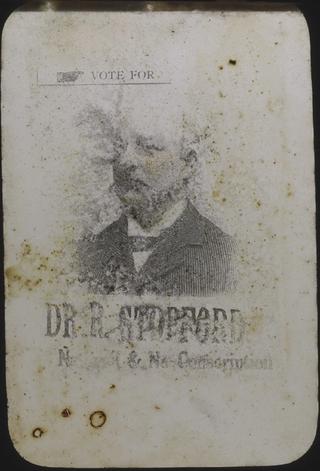 The earliest political glass cinema slide in the NFSA’s collection for Nationalist Party member, Dr Robert Stopford. Stopford served as Member for Balmain in the New South Wales Legislative Assembly from 1922 to 1925, after unsuccessfully contesting the seat in 1917 and 1920. The slide is simple in its approach, with a black and white profile of Dr Stopford, his party and the key issues he stood for. There are no bright colours or slogans to distract. Rather Dr Stopford relied on his high profile in the community, specifically his humanitarian work promoting child and maternal health, running a clinic for slum children and advocating for the introduction of a state medical service.