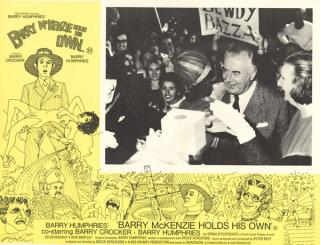 Barry McKenzie Holds His Own (Bruce Beresford, Australia, 1974) – the sequel to The Adventures of Barry McKenzie (Bruce Beresford, Australia, 1972) – is perhaps most famous for one of its final scenes where then-Prime Minister Gough Whitlam makes a cameo appearance and apparently makes Edna Everage (played by Barry Humphries) a Dame.