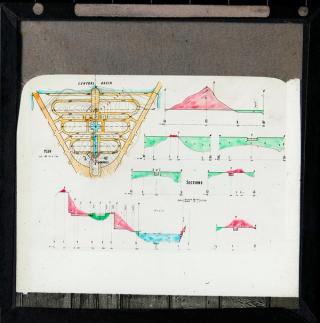 This slide shows a plan and seven section drawings for the area now known as the Parliamentary Triangle, which is situated between the Central Basin and Camp Hill.