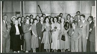 Grace Gibson with production staff and sponsors, 1952