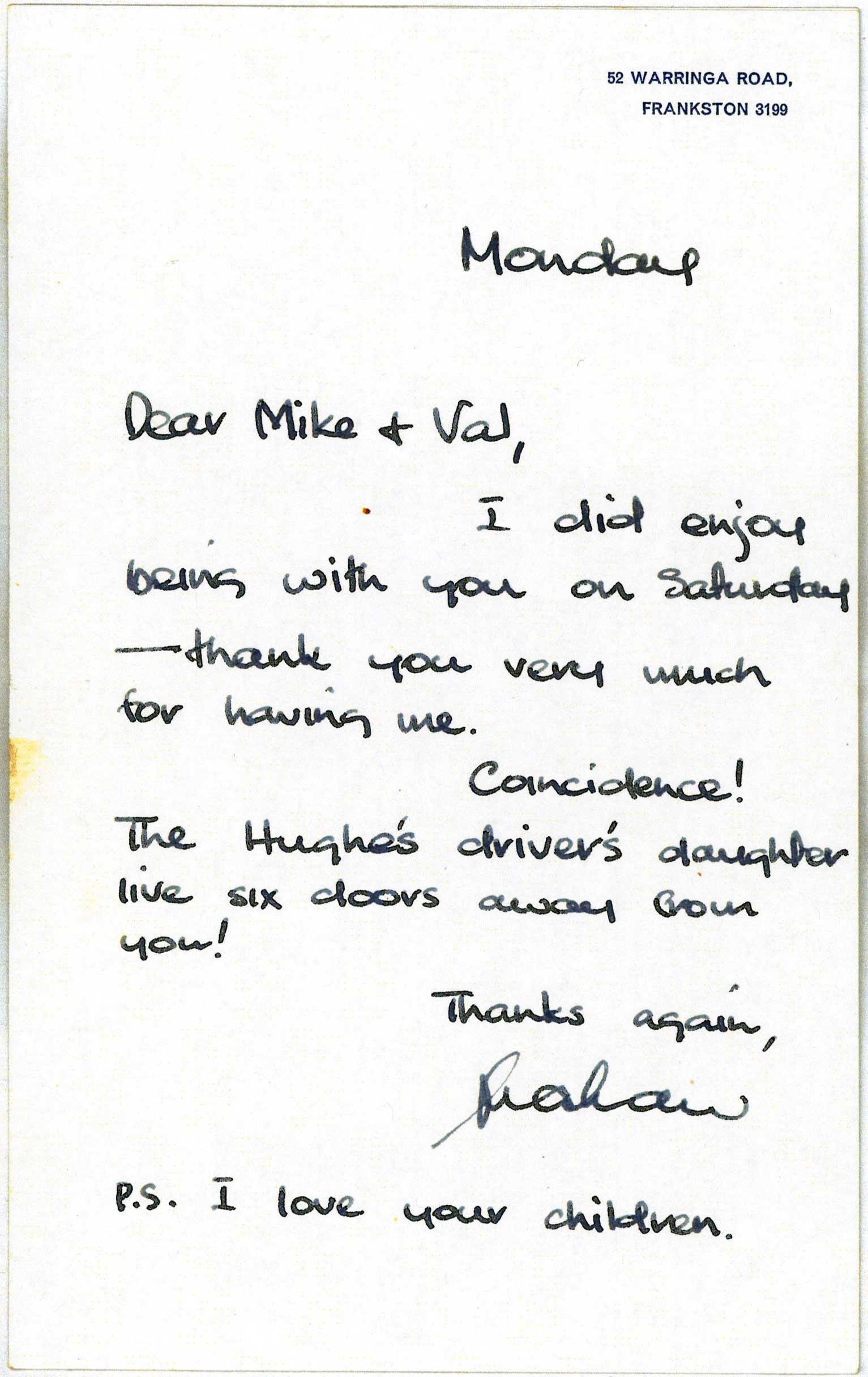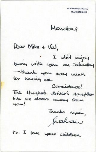 Graham Kennedy thank you letter gallery image