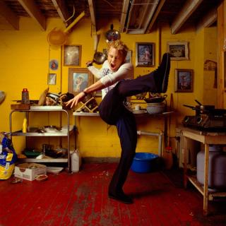 Heath Ledger in the Yellow Kitchen at Jacksue Gallery, Perth, 1999.