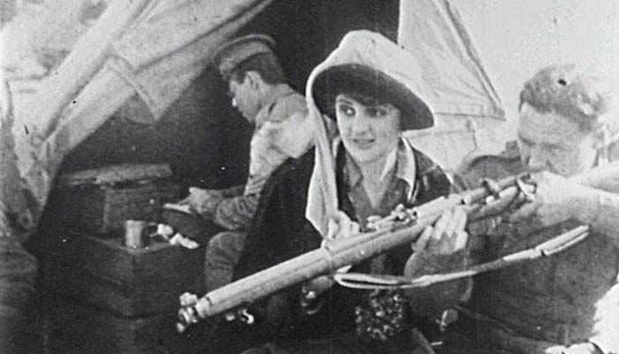 Lily Brunton (played by Loma Rossmore) and William Brown (Guy Hastings) in The Hero of the Dardanelles (1915).