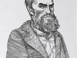 Ink drawing of Heath Ledger as Ned Kelly