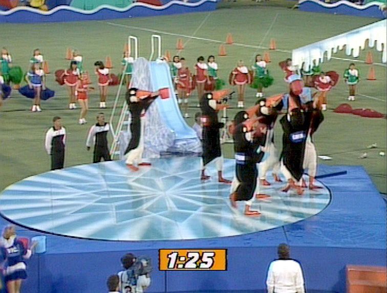 This clip from the fourth It's a Knockout Celebrity Special introduces the teams and their captains. The stars in this episode include Guy Pearce, Kylie Minogue and Tina Arena.