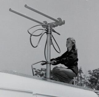 Jen Ward on the roof of ATN-7’s news cruiser.