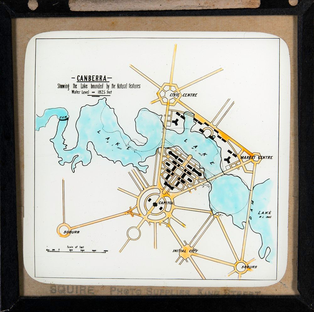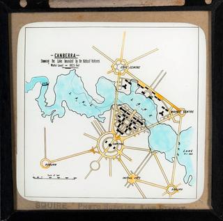 Walter Burley Griffin's design for the lake, as per his Preliminary Plan, is shown by dotted lines on this map.