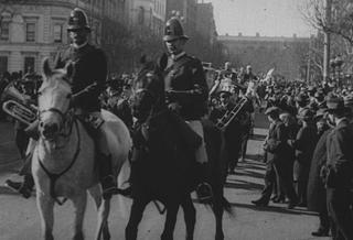 This newsreel footage shows part of the funeral procession of Australian cricketer Victor Trumper. A large group of men march in front of a horse-drawn vehicle carrying the casket of Victor Trumper as it approaches a Sydney cemetery.