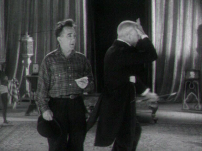 Wallace’s character in this film is a general stagehand, rather than a performer. He had used the same device in his first film, His Royal Highness (1932), partly because he always played characters at the bottom of the pile. Being a stagehand allowed a setting in which he could, at some point early in the film, demonstrate his unique style of dancing, singing and falling over. It may also have mirrored the kind of life he was leading when he joined the road show at age 16. He is said to have been a painter of scenery, mouth organist, odd-job man and even an acrobat in these shows. The 'stage drunk’ was a popular figure in Australian comic theatre. Wallace and Jack Patterson had played a pair of stage drunks for five years (as Dinks and Onkus), earlier in his career. They broke up in 1924, but we can get a sense of what the act was like in this clip, in which Joe Valli, a fixture in most Cinesound films, plays the companion drunk.