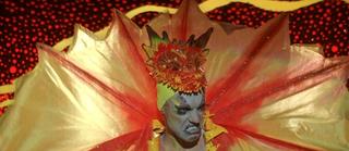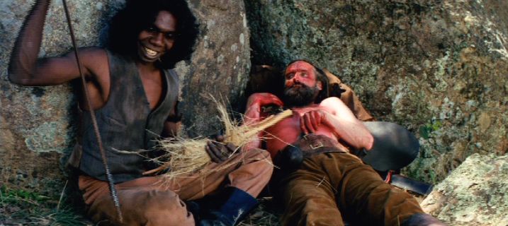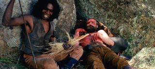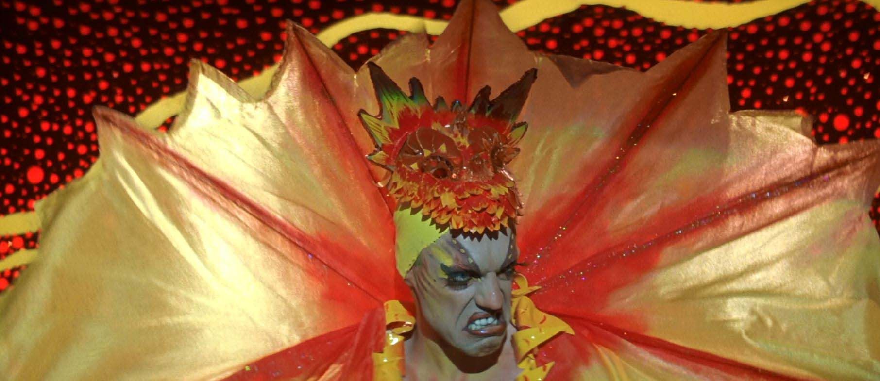 Screenshot from The Adventures of Priscilla, Queen of the Desert. Hugo Weaving wears a fierce frilled neck lizard costume.