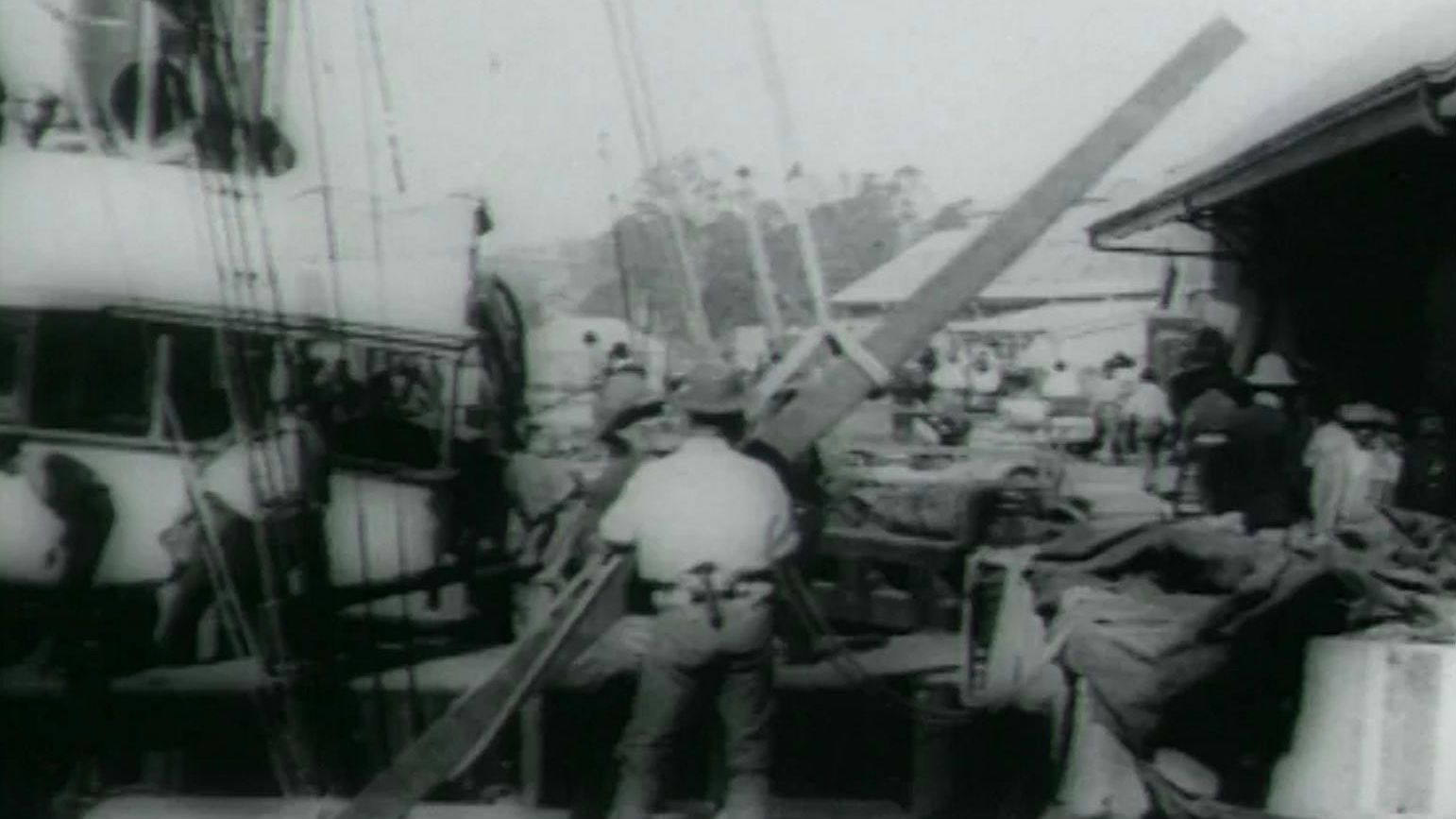 This actuality footage was taken by the official photographer of the Queensland Department of Agriculture, Frederick Charles Wills, and his assistant, Henry William Mobsby. Wills and Mobsby recorded agricultural processes (Wheat Harvesting with Reaper and Binder, 1899), modes of transport (North Shore Steam Ferry, 1899) and historical events (Opening of Queensland Parliament, 1899) using a Lumière Cinematographe camera. They produced over 30 films in 1899, but most of them were never screened publicly in Australia. Instead, they accompanied lectures in Britain promoting migration to Queensland.