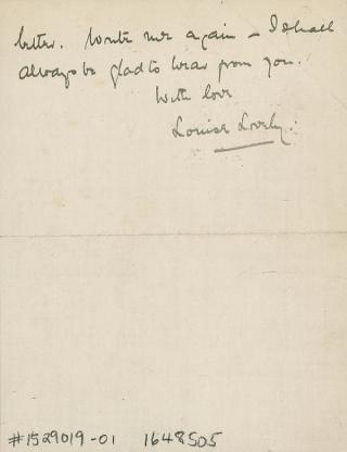 Louise Lovely fan letter to Gladys (verso)