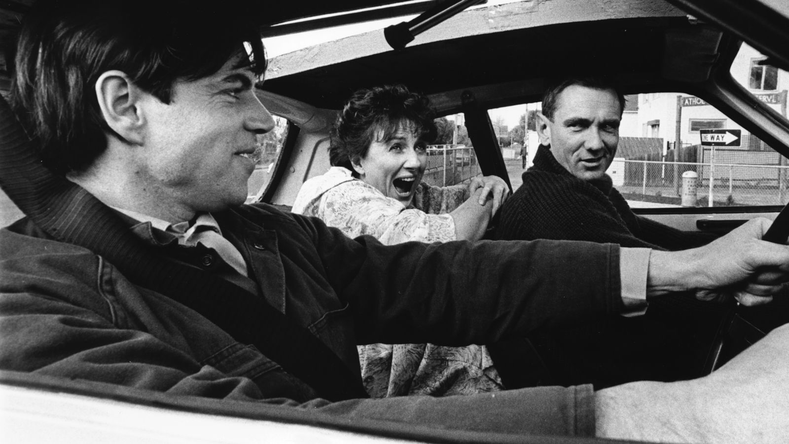 Judith (Lindy Davies) coaxes Frank (John Hargreaves) and Malcolm (Colin Friels) to go for a walk. Malcolm wants Frank to explain how he gets the money in a stick-up, but the demonstration goes wrong. In the pub later, Frank’s friend Willy (Chris Haywood) can’t stop laughing. The barmaid (Heather Mitchell) tries not to join in.
