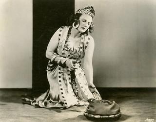 This photograph, taken in New York, shows Lawrence dressed as the character Salome on set of a Metropolitan Opera production of Salome by Richard Strauss.