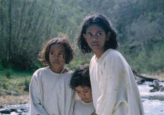 Molly (Everlyn Sampi), Gracie (Laura Monaghan) and Daisy (Tianna Sansbury) walking through a creek bed in a still from Rabbit-Proof Fence.