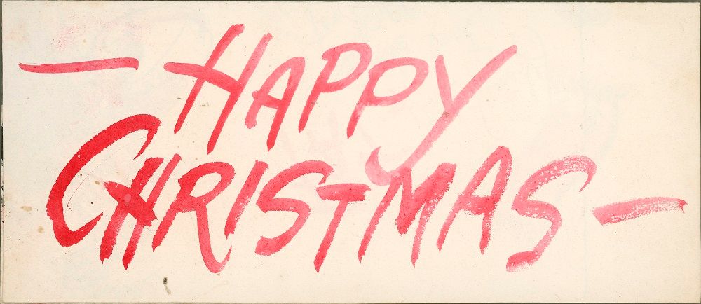 Mr Squiggle card_Merry Christmas in large red, handwritten letters