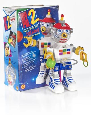 My Pal 2 was not just a toy; it was an interactive companion designed to spark imagination and bring futuristic play into the lives of kids. Released by Toy Biz in the early ’90s, this colourful robot captured the hearts of children with its engaging features and playful personality. Equipped with games like 'Simon Says', My Pal 2 challenged kids to follow sequences of flashing lights, encouraging memory and reflex development. It also functioned as a motion-sensitive security alarm – a novelty that made kids feel like they had their own high-tech defence system, even if it was just to keep siblings at bay. But what truly set My Pal 2 apart was its ability to talk. With a series of cheerful phrases, it was marketed less like a toy and more like a friend. Brightly coloured and packed with personality, My Pal 2 was a standout in early ’90s toy design, blending fun, learning, and a hint of futuristic fantasy.