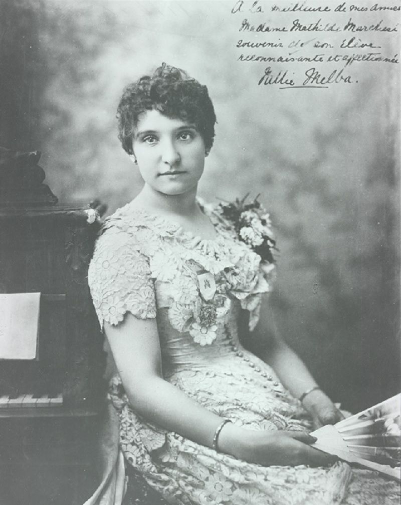 Nellie Melba was born Helen Mitchell in Richmond, an inner suburb of Melbourne, in 1861. She was married for a short time to Charles Armstrong, giving birth to their son, George, in 1883 in Queensland, but she decided that she wanted to be an opera singer. She returned to Melbourne in early 1884 and gave her debut concert in May that year.