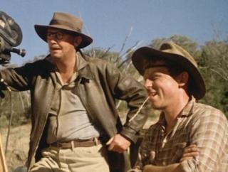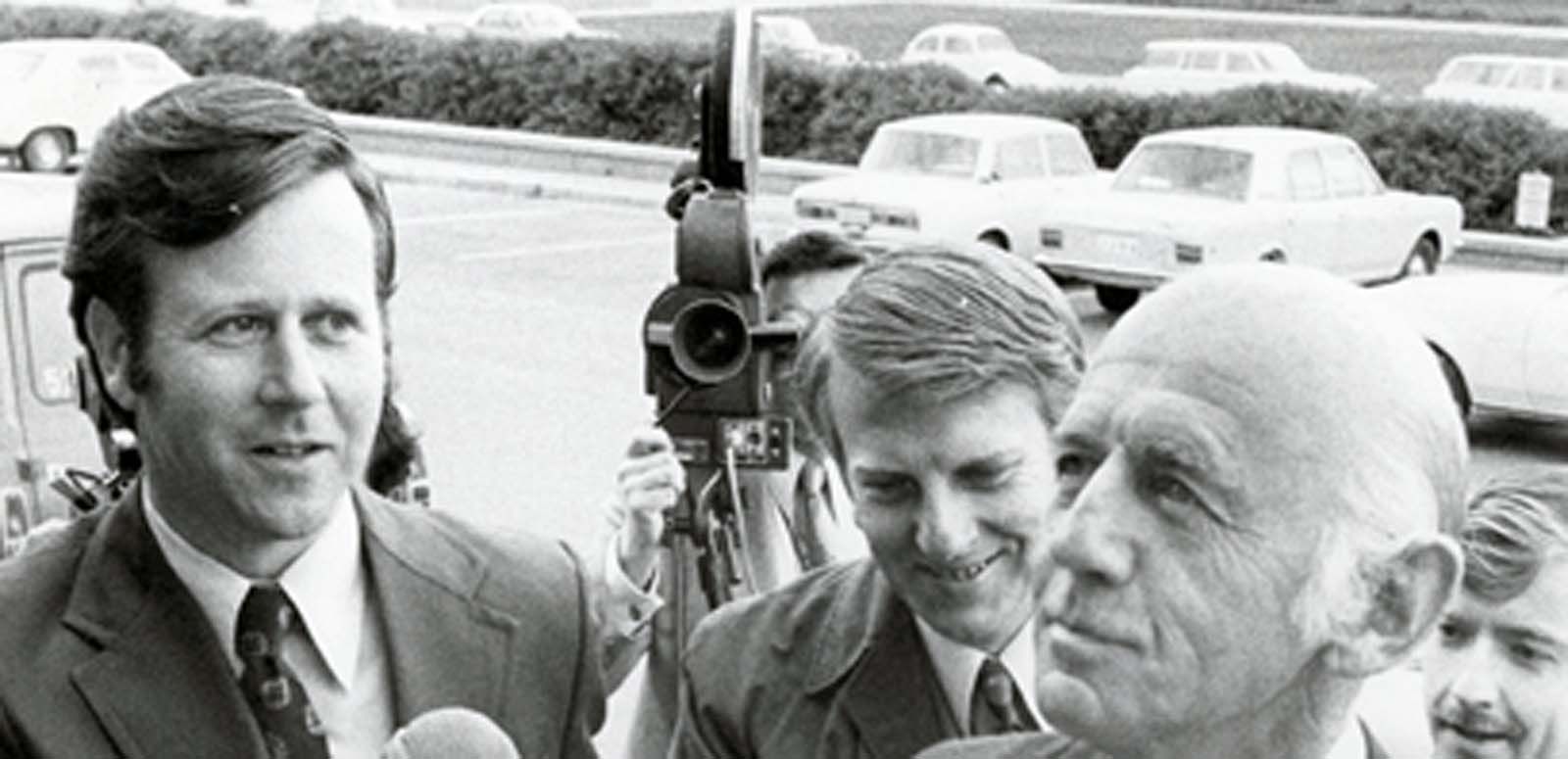 This clip shows the production team from the fictitious Cinetone newsreel company reviewing a newsreel that trumpets the electoral victory of the Liberal–Country Party coalition led by Robert Menzies. The clip uses black-and-white archival footage from a real newsreel within the fictional world of the film. Studio boss AG Marwood (Don Crosby) is unimpressed when a shot of a smiling and waving Menzies is successively repeated on the newsreel and lectures the film editor, Geoff (Bryan Brown), about his immaturity and the benefits of a Menzies Liberal–Country Party government.