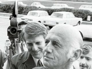 Among the employees is film editor Geoff. On screen we see Menzies walking and waving to the crowd but the newsreel has been tampered with so that Menzies walks back and forth waving over and over. Geoff and his colleagues laugh.