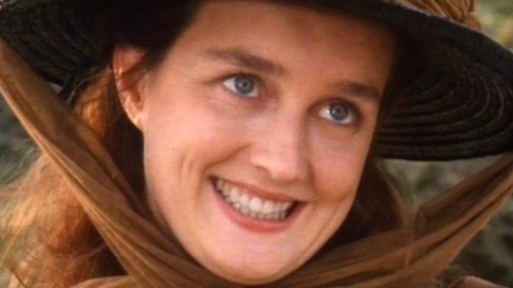 Members of the Rudd family are sitting inside the house when a young woman opens the door and enters followed by a dressed-up woman.