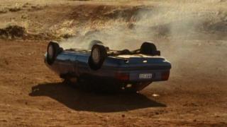 While making his deliveries, stock and station agent Bob (Bill Hunter) has spotted the car of the local policeman parked outside a neighbouring farmhouse. Interviewed later, he suggests the policeman should be ‘carpeted’ for dereliction of duty. His wife Gwen (Denise Roberts) nods in agreement. In flashback, four lady bowlers are upside down in their upturned car, blinking and silent with shock. Margot (Lynette Curran) asks if everyone is alright. Carmel (Lois Ramsey) begins to panic about a fire. Local pig farmer Maurie (Paul Chubb) approaches in his truck. Bachelor farmer Brian (Bill Young) is spraying weeds, unaware of what has happened on the road beside his paddock. Nell (Monica Maughan) tries to calm the situation in the car. Summary by Paul Byrnes.
