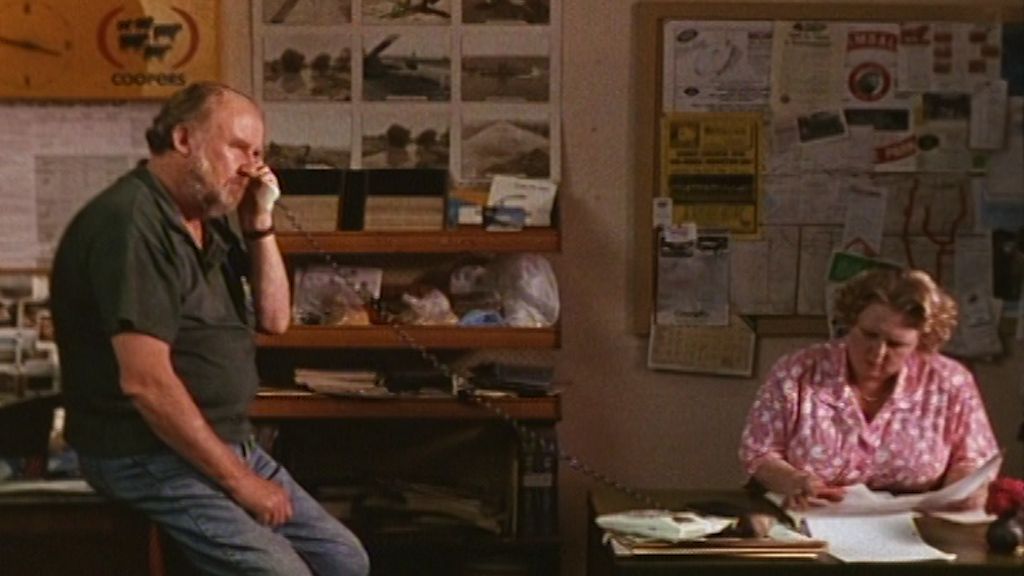 The film is quite ambitious in terms of structure. This scene takes place in three time frames, flashing forward and back with confidence. It also uses documentary-style interviews, to give a sense of a story being told, as well as actually experienced. Bill Hunter’s opening comments give a very clear sense of the film’s great command of vernacular rhythms. Denise Roberts, as his wife, says a lot with her eyes, choosing not to interrupt her husband’s self-important oratory.