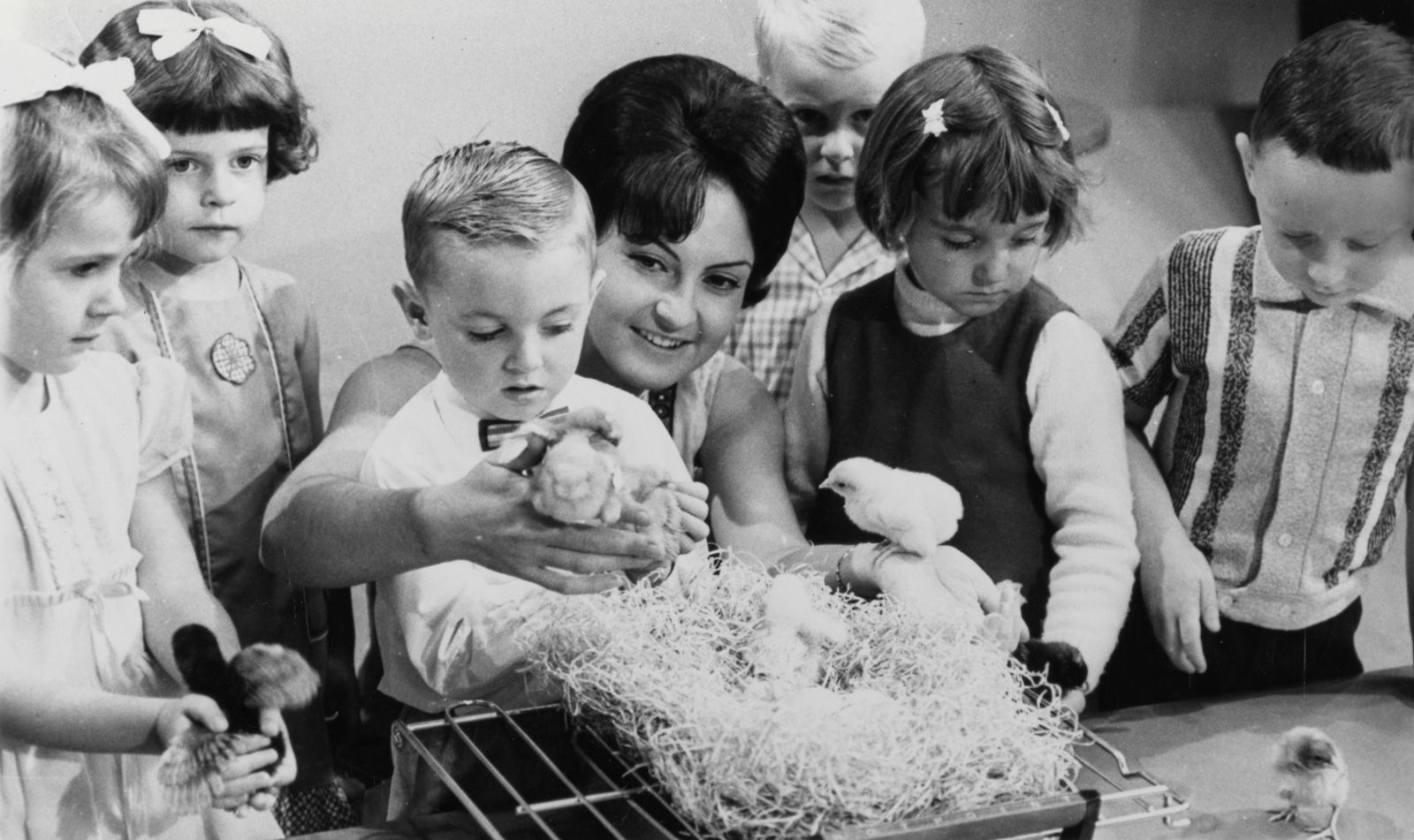 In this 1964 clip from Televille we see Rosemary Eather playing a game with her child guests.